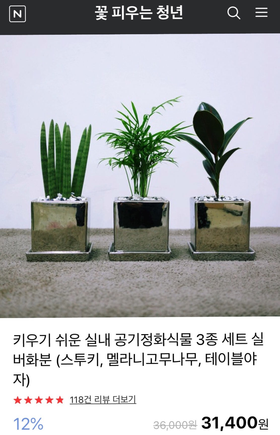 우연히 발견한 글에서 이 공기정화 식물 3종세트을 보게됨. 친구가 선물로 보내줬는데, 마음에 든다고~
