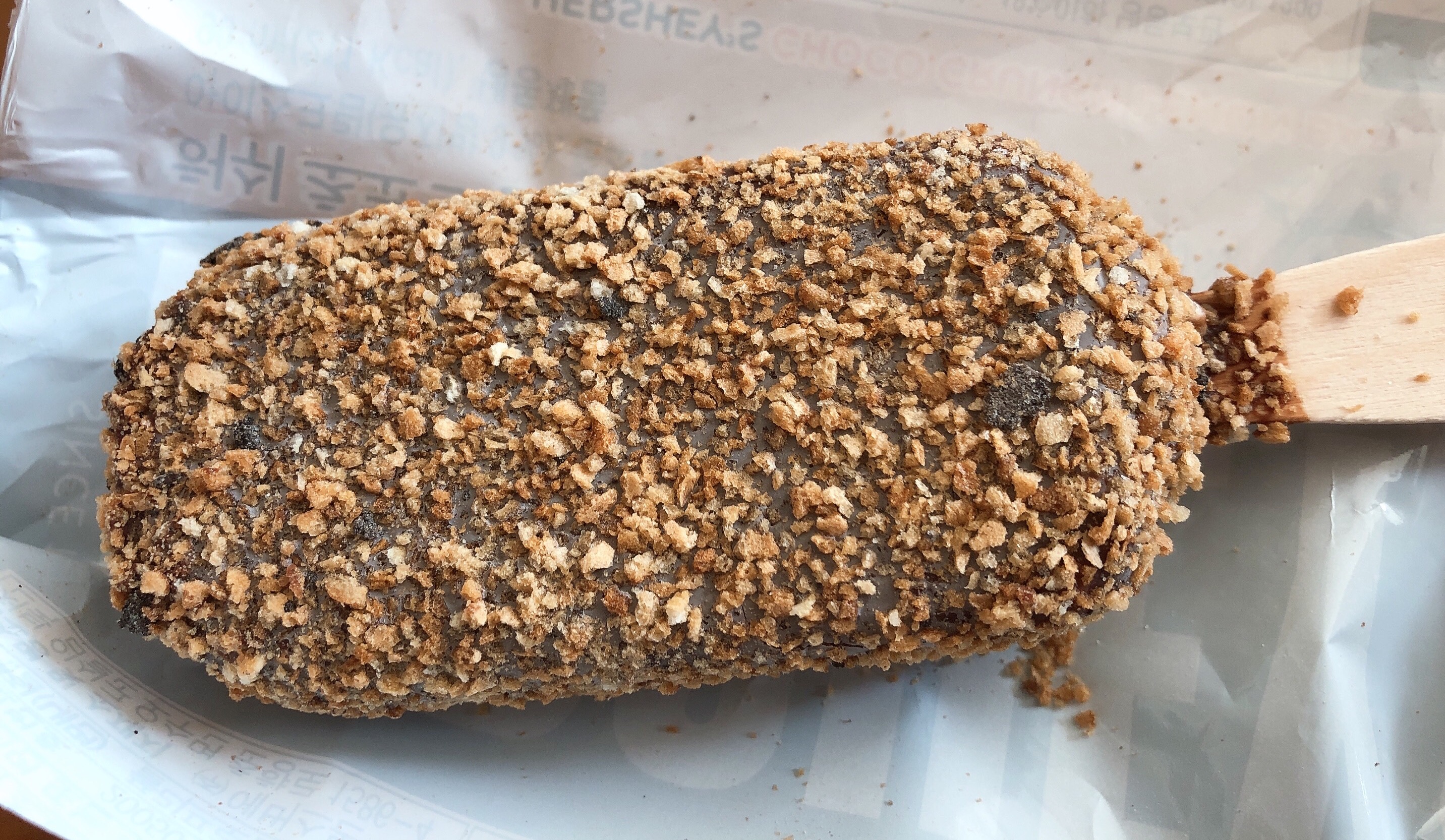 허쉬 초코 크런치가 붙어 있어서 뜯을 때 가루 조심해야 한다.