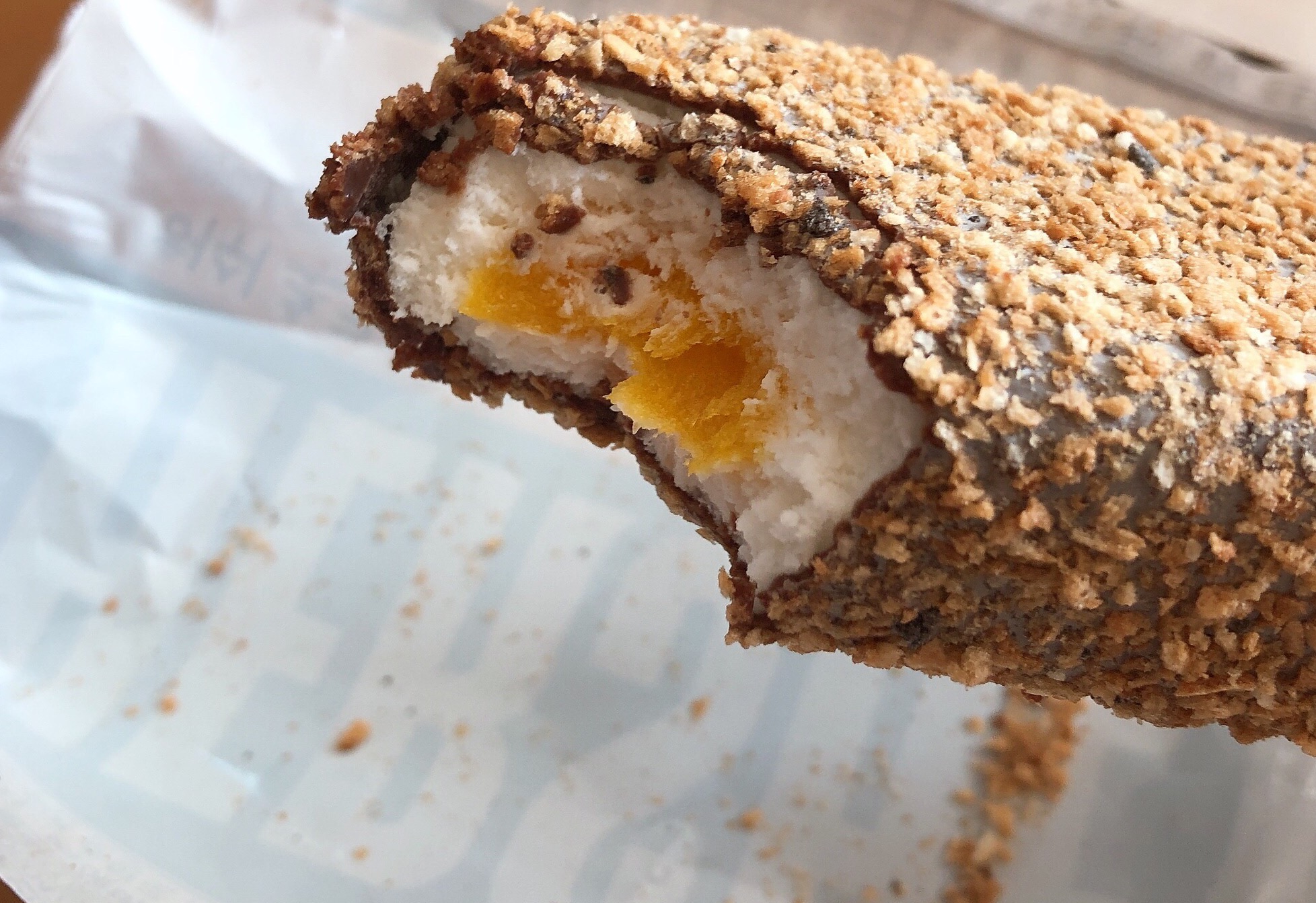안에 레몬이 들어서 상큼한 맛이 난다. 초코 크런치 식감은 깨가 붙은 듯 고소한 느낌으로 초코맛이 강하지는 않은데, 음미하면 초코맛이 난다. 돼지바처럼 씹는 재미가 있다.